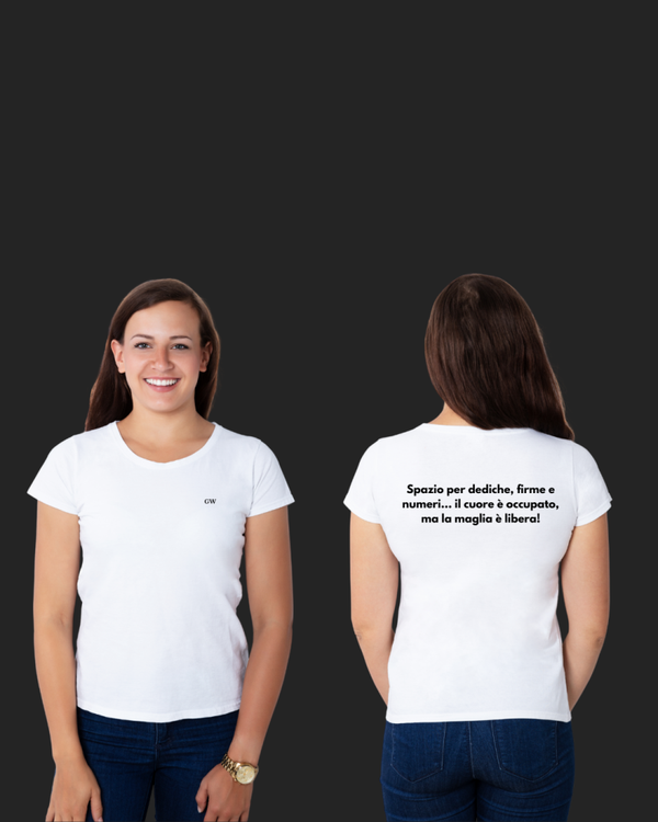 "Spazio per dediche, firme e numeri… il cuore è occupato, ma la maglia è libera!",
