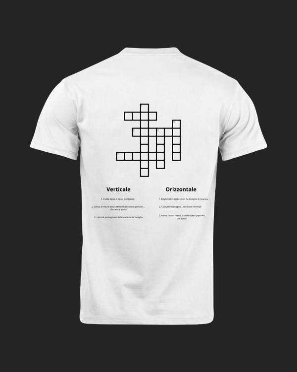 Con la T-Shirt “Crossword”, il classico cruciverba si trasferisce direttamente sulla tua schiena, trasformandoti in un vero e proprio rompicapo ambulante 🧠💥